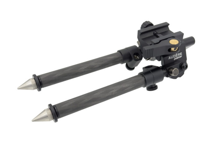 Audere Shadow Bipod er designet for sports-skyting. Karbonfiberbena og aluminiums-kroppen bringer vekten ned til bare 300 gram (10 oz). Høyden varierer mellom 195 mm (7,6 tommer) og 245 mm (9,6 tommer) med fire justerings-punkter hver 20 mm (0,7 tommer). Bena kan justeres uavhengig med fem 45° spotter og er utstyrt med utskiftbare spore-føtter i gummi og rustfritt stål inkludert i esken. Den forlengede spaken gjør det mulig å justere skråningen innenfor et område på 40°. Kontrollene er plassert bakover, slik at skytteren enkelt kan betjene uten å endre holdningen.