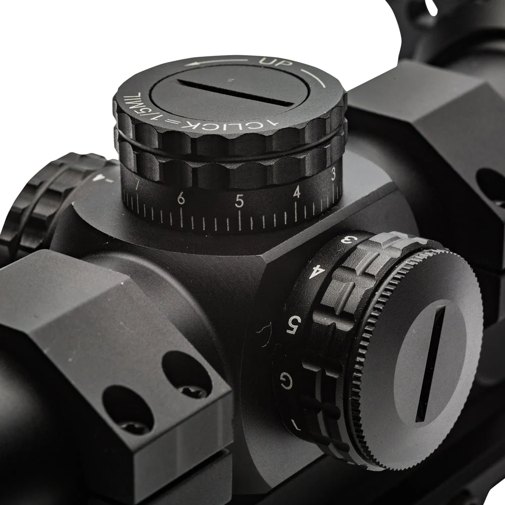 RapidStrike 1-6x-settet inkluderer et utkragende feste, pop-up-låsetårn, flip-up-hetter og et dobbelt optisk oppsett for nær- til middels rekkevidde.